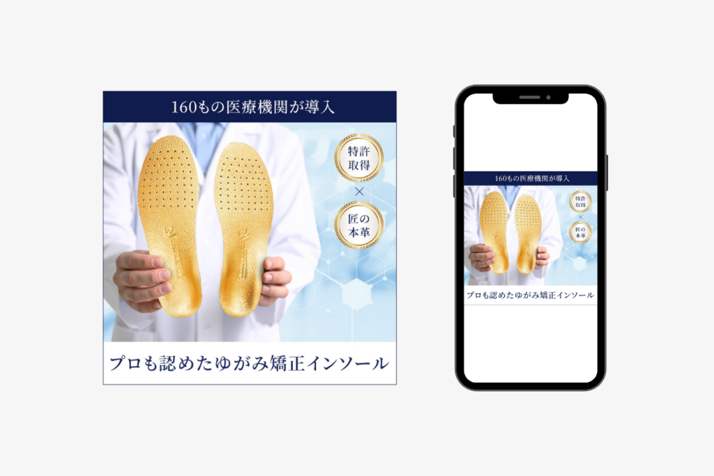 ③物販バナーのためインソールの写真が一番目立つよう写真を大きく配置しました。