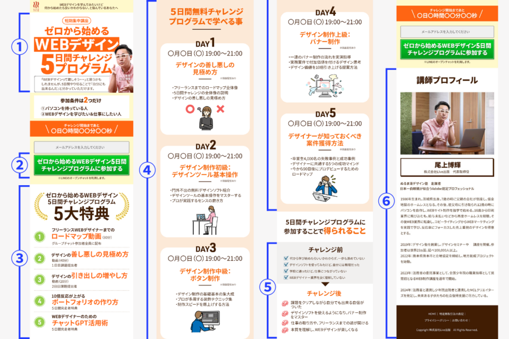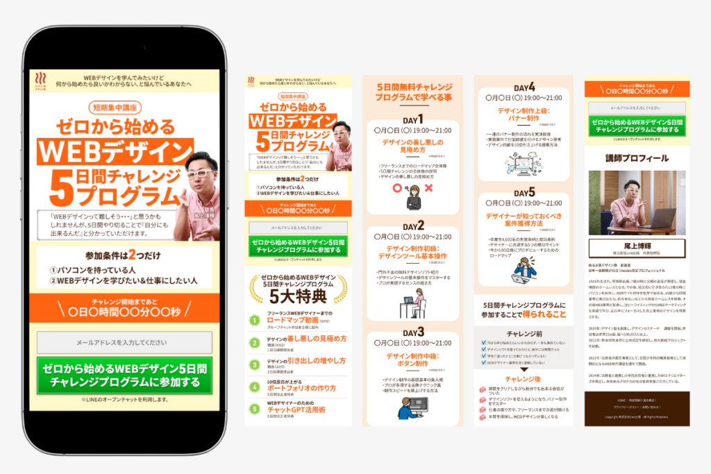 目的:無料のWEBデザイン5日間チャレンジに参加してもらうこと。チャレンジ後には、講座を案内予定。